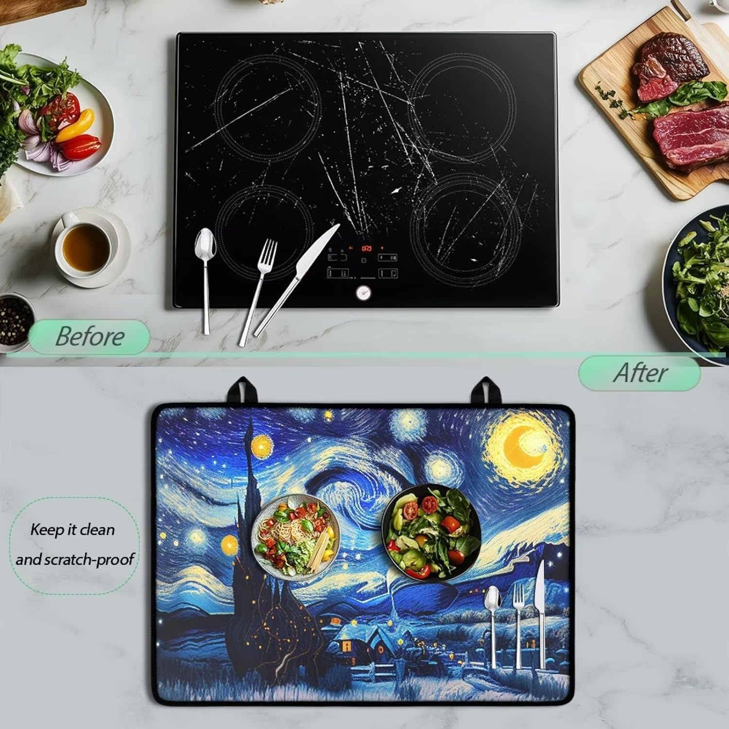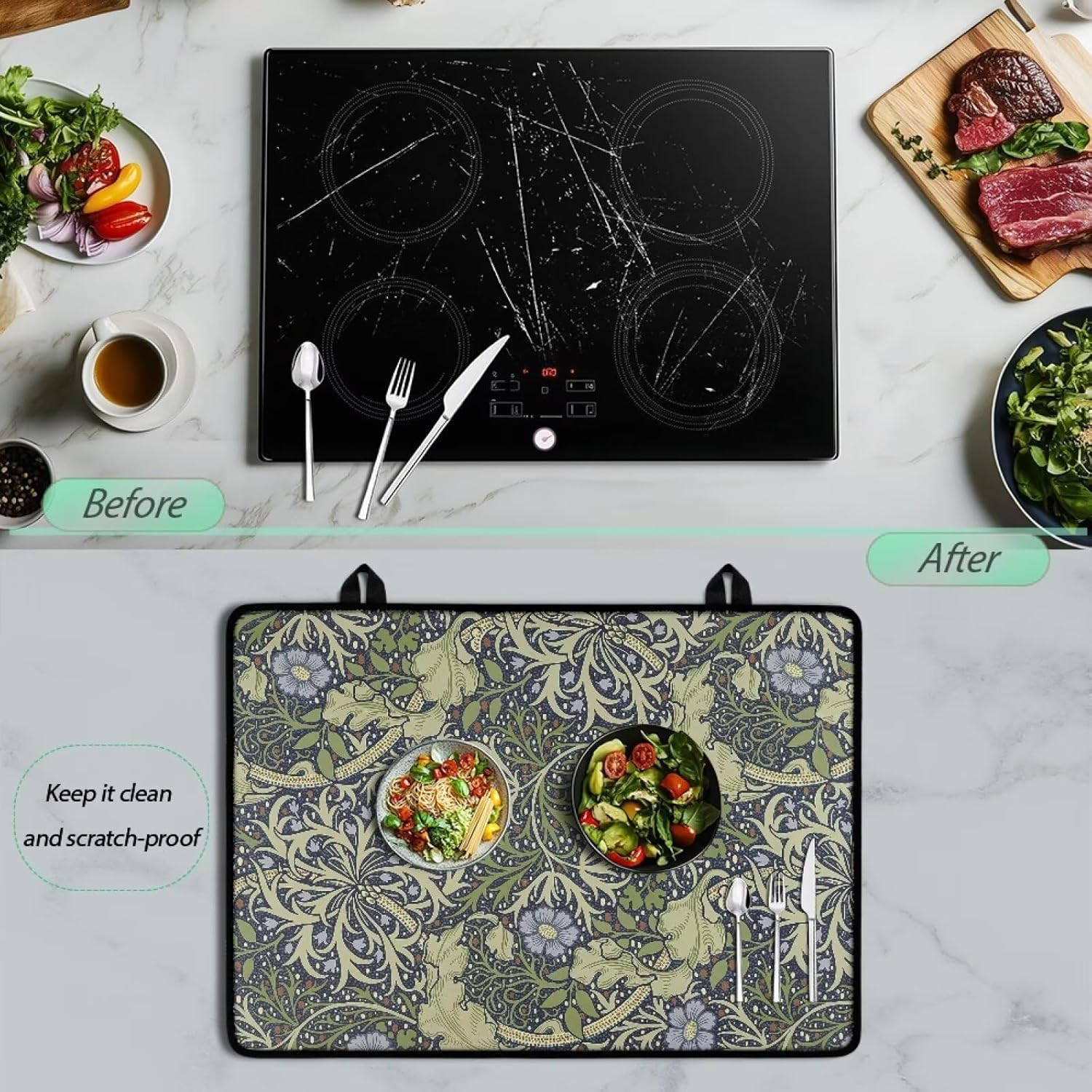 Note: If you need to put it on the electric stove, please make sure to use it after the induction cooktop is off. Our electric stove cover is made of high quality rubber, 29 x 21 inch silicone stove cover fits most sizes of electric stove tops.Designed in a variety of stylistic patterns such as William Morris, farm, oil painting, and aztec, this stove cover adds a touch of elegance and style to your kitchen décor while protecting your stove top from dirt, scratches, and grease. This heat pad protects your electric stove, kitchen countertop, electric range, table or washer-dryer top from scratches, spills and stains, and also prevents wooden tables from being discolored due to prolonged heat. The hanging strap design allows you to hang it on the wall without taking up space when using the electric stove,, and it also prevents the wall from being stained by grease. Our electric stove cover is dishwasher safe, just wipe it with a damp cloth. In addition, its foldable design makes it easy to store in a cabinet or closet when not in use. AFTER-SALES: You can contact our customer service at any time if you have any questions. Our customer service team is available 24/7 and will solve the problem within 48 hours in the order of inquiry. Note: If you need to put it on the electric stove, please make sure to use it after the induction cooker is turned off.