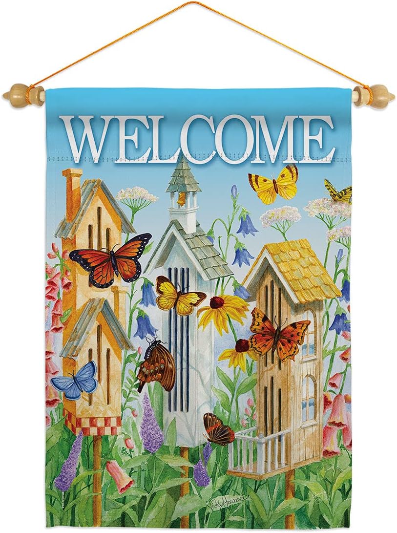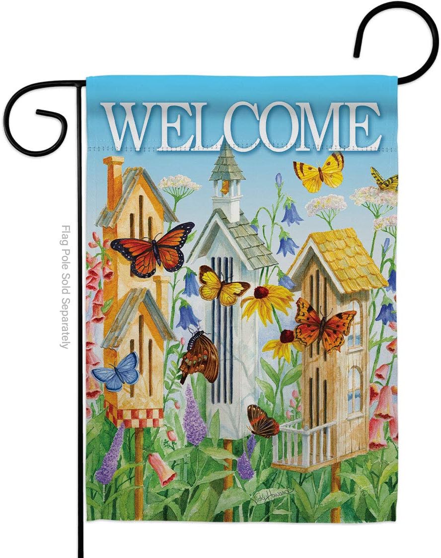 Welcome Butterfly Houses Burlap Garden Flag Friends Ladybugs Dragonfly Bee Springtime Insect Natural Wildlife Small Decorative Gift Yard House Banner Double-Sided Made In USA 13 X 18.5